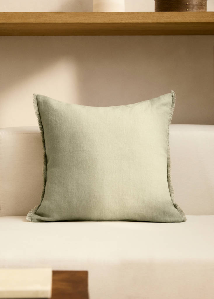 Linen cushion cover with fringes 50x50 cm