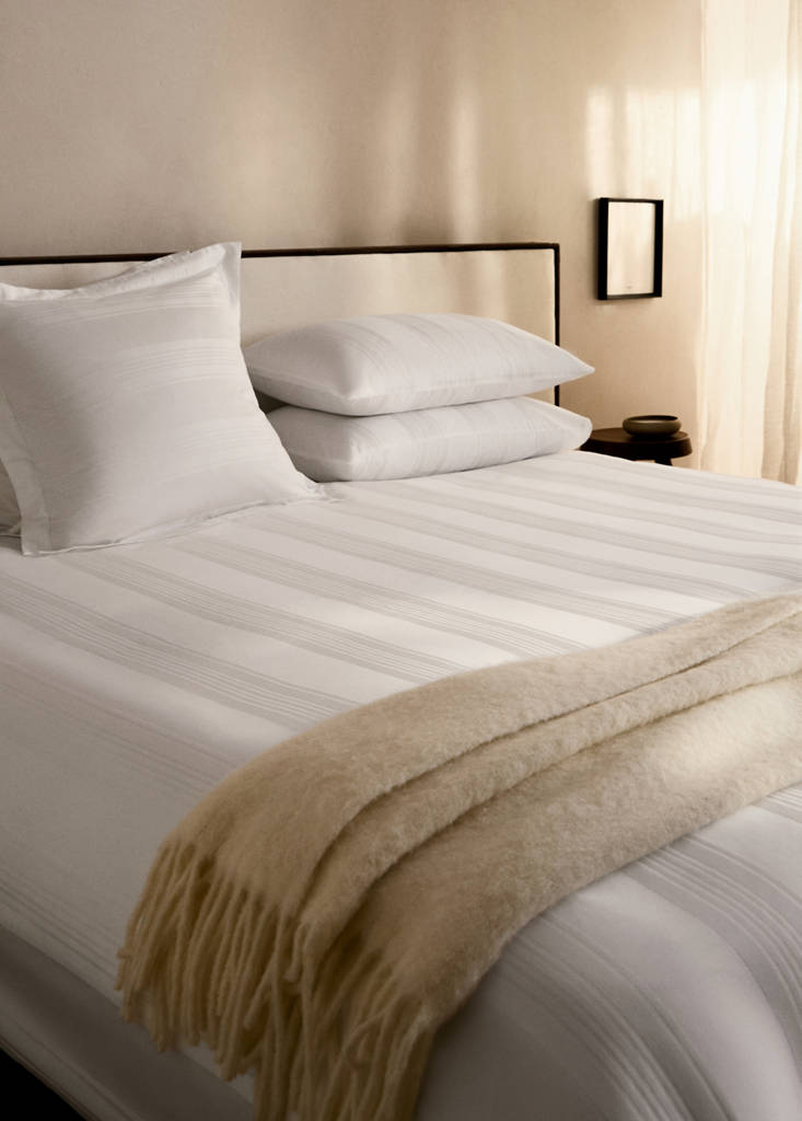 Size: 240x220cm. 150/160cm bed. 100% Cotton. Jacquard satin stripes. Superior softness, highly breathable, very durable and cool to the touch. 300 thread count. Coordinates with more products from the collection. This product does not include pillowcases