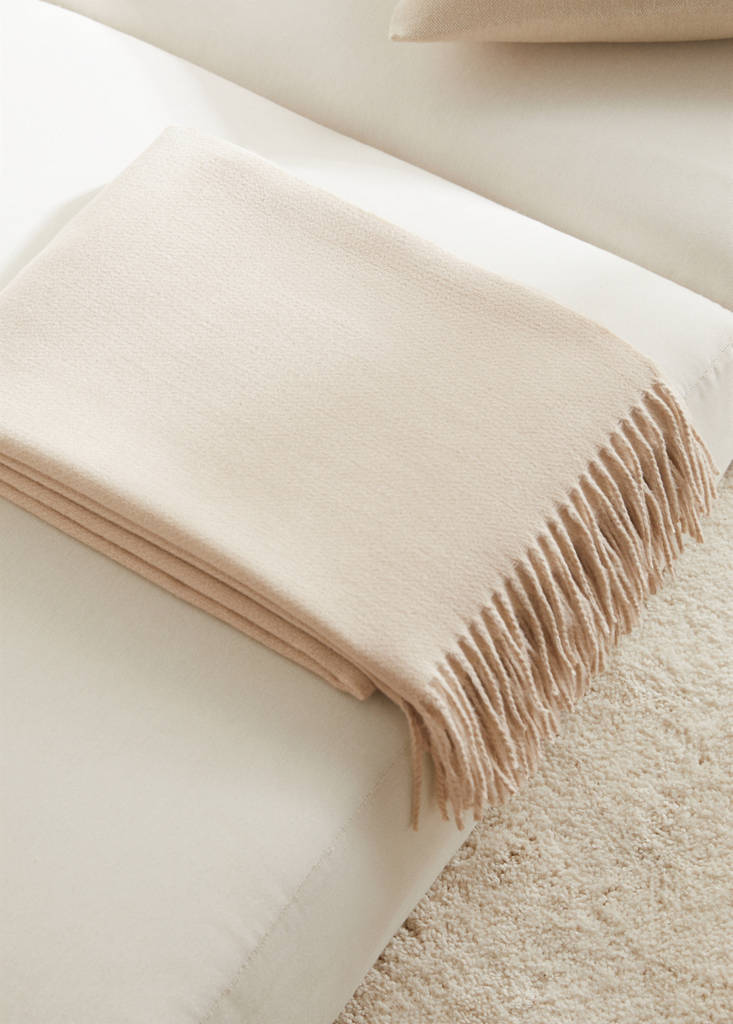 Size: 130x180cm. Fringed finish. Plain fabric. Pleasant texture. Moderately warm fabric. Ideal for transitional seasons