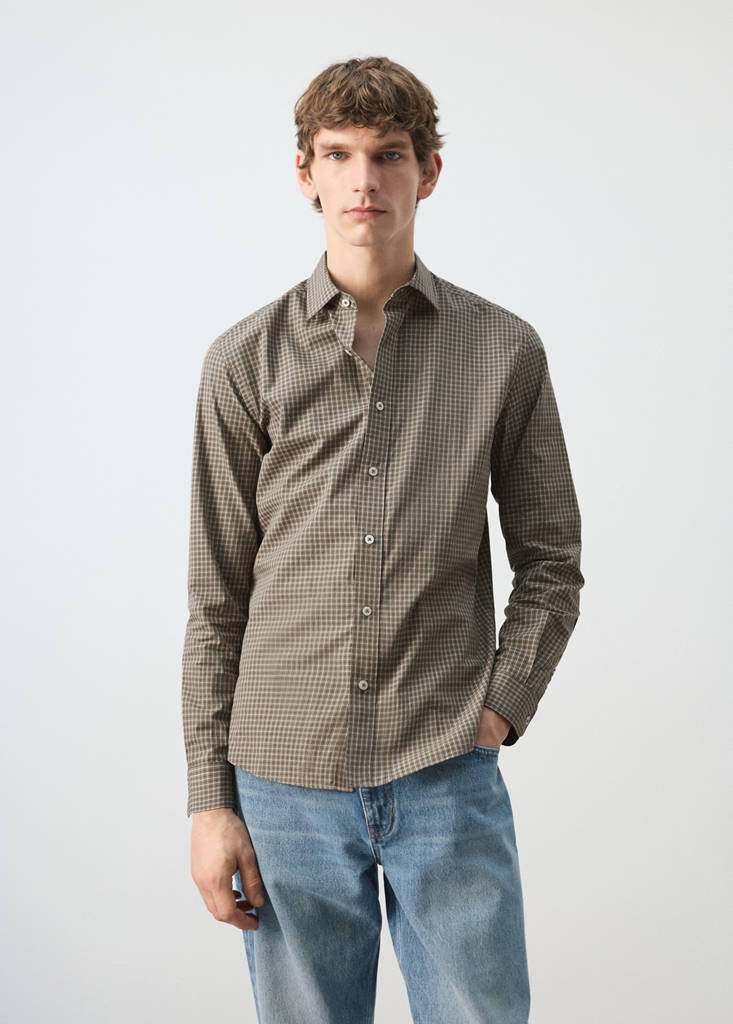 100% cotton regular fit check shirtCurrent price [€ 51.99 ]€ 51.99Select a colourBrownThe model is wearing size M and is 187cm tall.Select your sizeXSSMLXLXXLDimensionsAddAdd to your wishlistSee lookFree delivery to store100% cotton fabric. Regular fit. Standard Length. Check-pattern. Shirt collar. Long sleeves with buttoned cuffs. Button up. Rounded baseDetails, composition and careStore availability