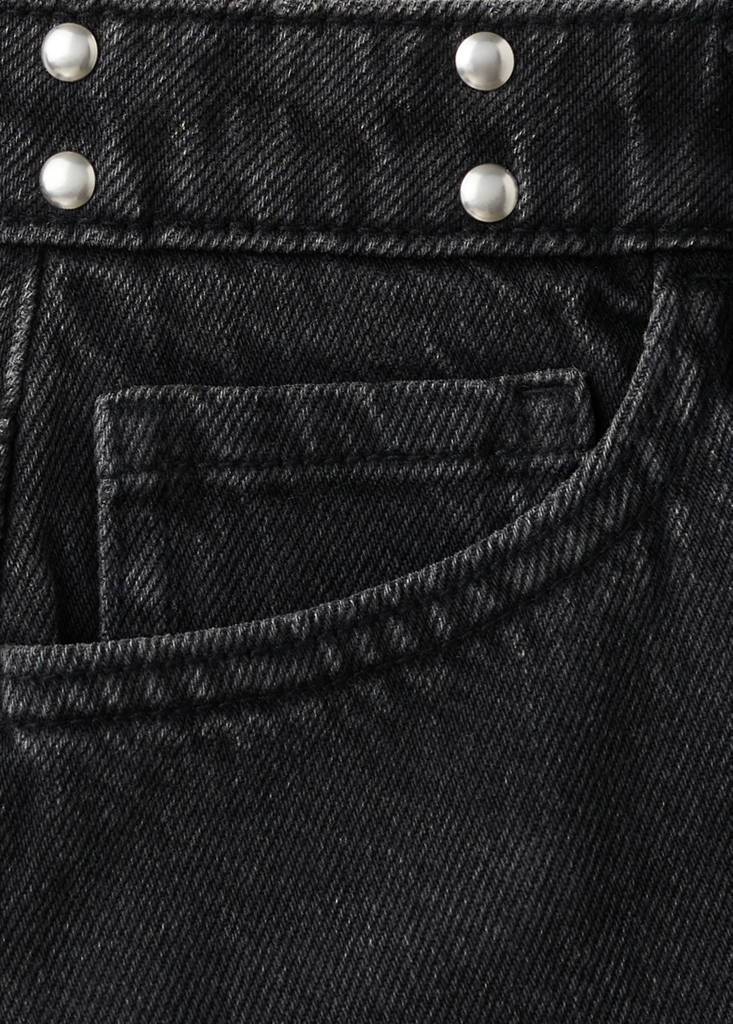 New NowDenim skirt with stud detailsCurrent price [€ 29.99 ]€ 29.99Select a colourBlack denimSize change - Consult the Size GuideSelect your sizeXXSXSSMLXLMeasurementsAddAdd to your wishlistSee lookFree delivery to storeDenim-style cotton fabric. Straight Design. Short design. Belt loops. Zip and button fastening. Stud detailDetails, composition and careStore availabilityItem qualitiesRecycled cottonAt least 20%This fibre is obtained from pre- and post-consumer textile waste that is transformed into new fabrics.