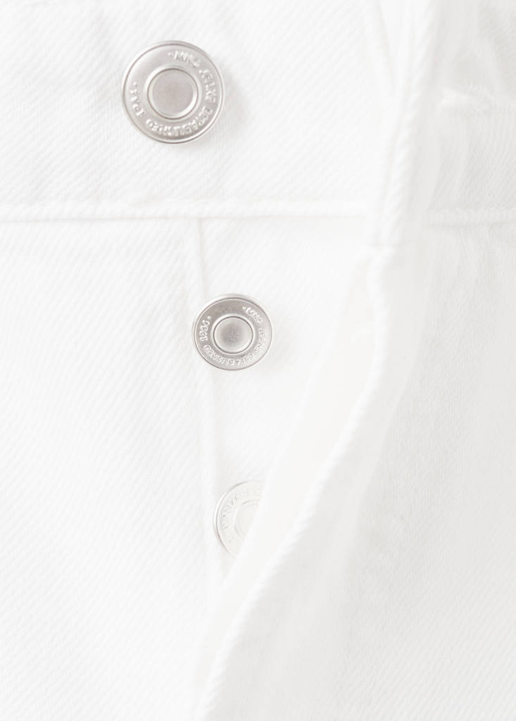 Denim-style cotton fabric. Capri design. Mid-rise. Belt loops. Five pockets. Button up