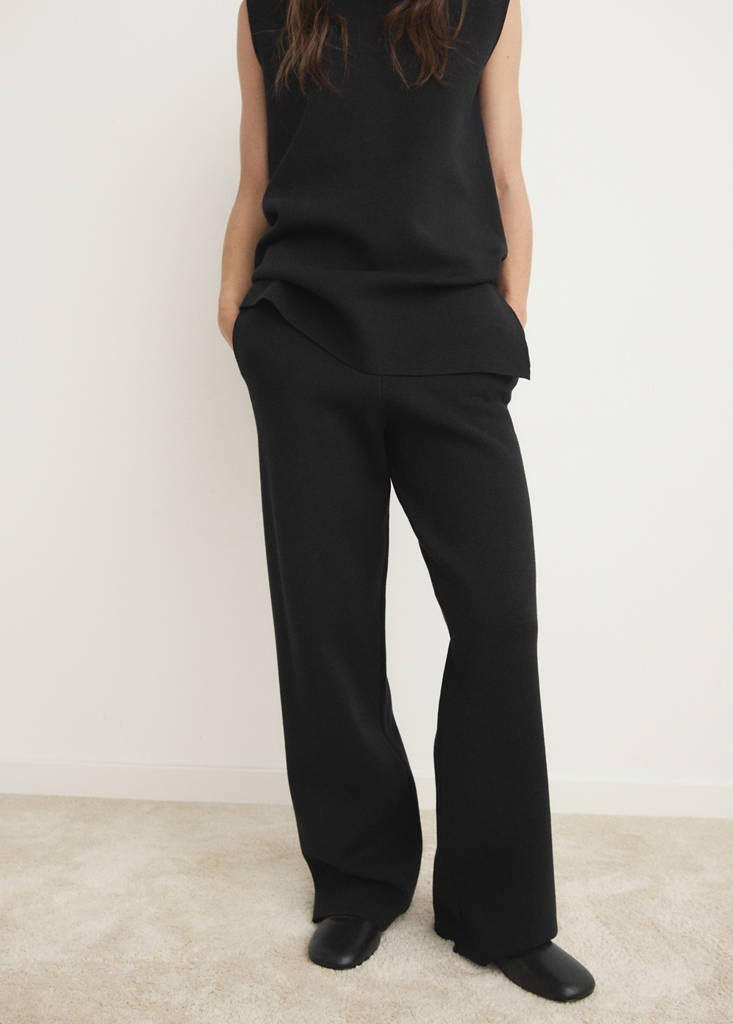 Knitted trousers. Straight design. Long design. Stretch fabric. Adjustable Elastic Waistband. Coordinates with more products from the collection