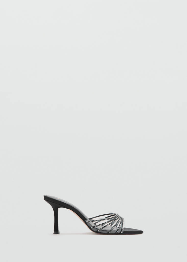 Stiletto heel sandal with strapsCurrent price [€ 51.99 ]€ 51.99Select a colourBlackSelect your size35Not available. I want it!36Not available. I want it!37Not available. I want it!38Not available. I want it!39Not available. I want it!40Not available. I want it!41Not available. I want it!42Not available. I want it!DimensionsNotify meAdd to WishlistSee lookFree delivery to storeStraps design. Slingback design. Glossy design. Rhinestone detail. Open toe. Stiletto heel. 8 cm heelDetails, composition and careStore availability