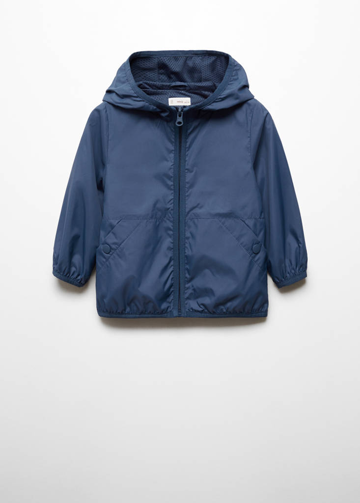 Raincoat. Straight design. Hood. Long sleeves. Inner lining. Two front pockets. Zip fastening. Internal label for personal data