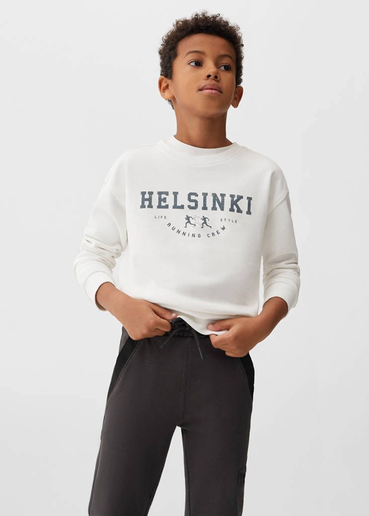 Brushed fabric. Long design. Jogger design. Patch pocket on the back of the trouser. Drawstring closure. Felt fabric