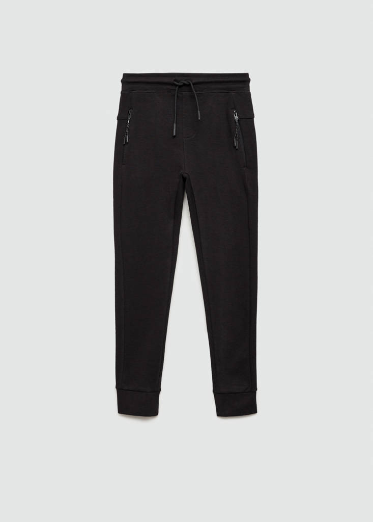 Back to school collection. Long design. Elastic waist with adjustable drawstring. Zip pockets on both sides. Jogger Style. 100% Cotton. Straight design