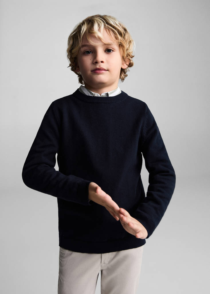 Knit cotton sweaterCurrent price [999.00 MUR ]999.00 MURSelect a colourDark NavySelect your size5-6 years (116cm)7-8 years (128cm)9-10 years (140cm)11-12 years (152cm)13-14 years (164cm)MeasurementsAdd to WishlistSee lookFree delivery to storeParty, ceremony and communion collection. Fine knit fabric. Straight design. Round neck. Long sleevesDetails, composition and careStore availabilityItem qualitiesRecycled cottonAt least 20%This fibre is obtained from pre- and post-consumer textile waste that is transformed into new fabrics.
