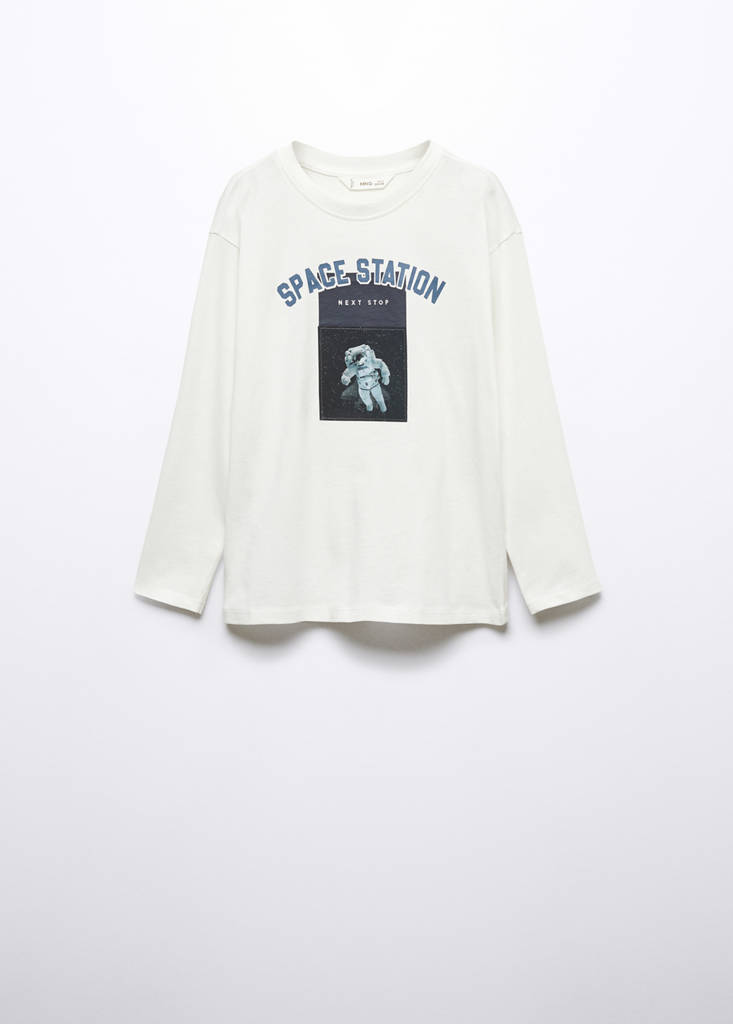 Straight design, printed message, rounded neck, long sleeve.