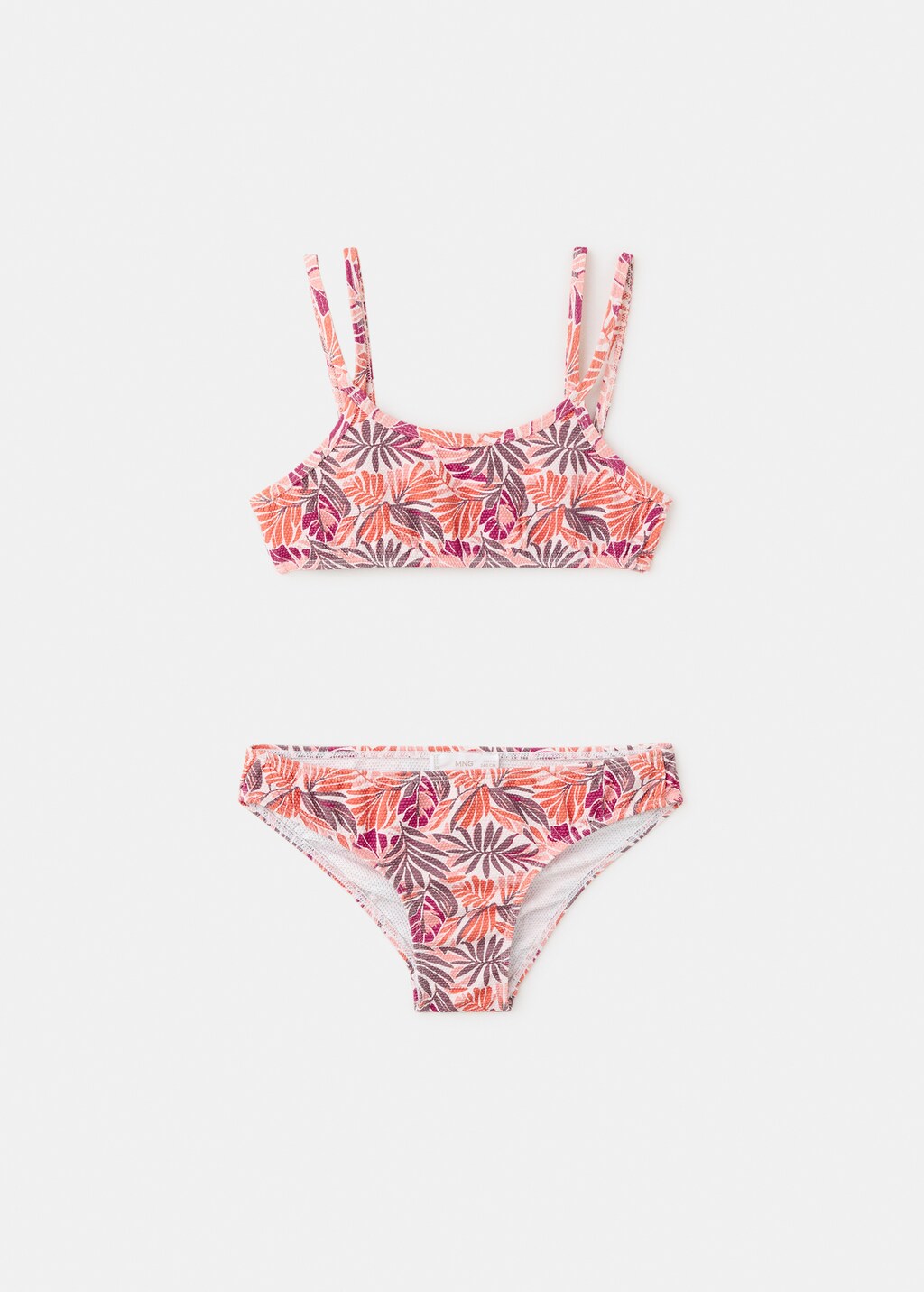 Bikini set. Stretch fabric. Textured fabric. Floral-print design. Straps. Swimwear collection.