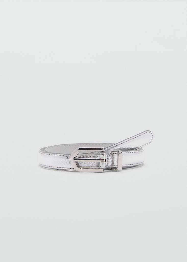 Buckle metallic beltCurrent price [899.00 MUR ]899.00 MURSelect a colourSilverSelect your sizeSMLXLDimensionsAdd to WishlistSee lookFree delivery to storeMetallic finish. Oval design. Metallic buckle. Adjustable buckleDetails, composition and careStore availability