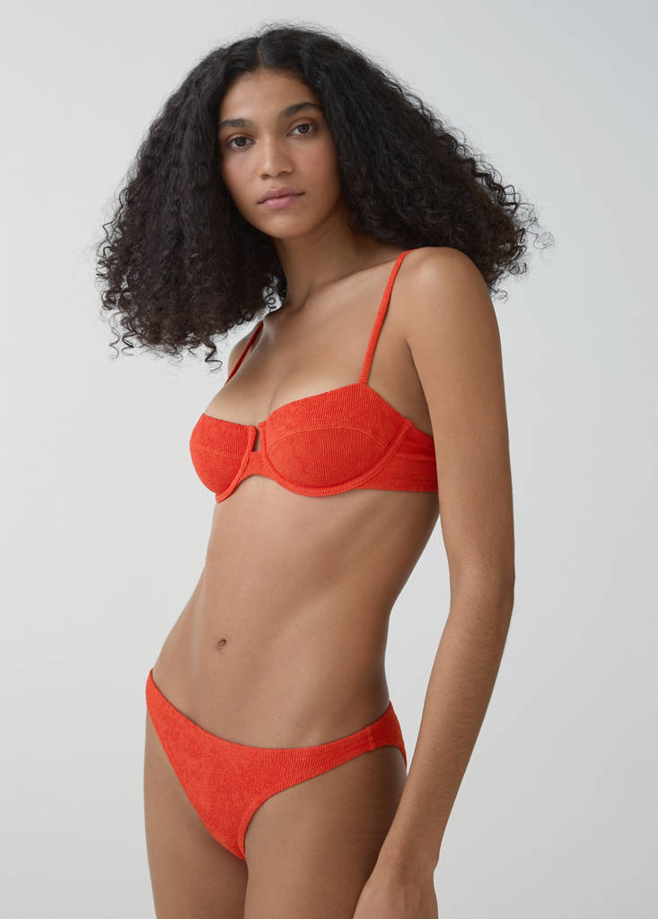 Textured fabric. Thin straps. Wired. Inner lining. Set Available. Swimwear collection