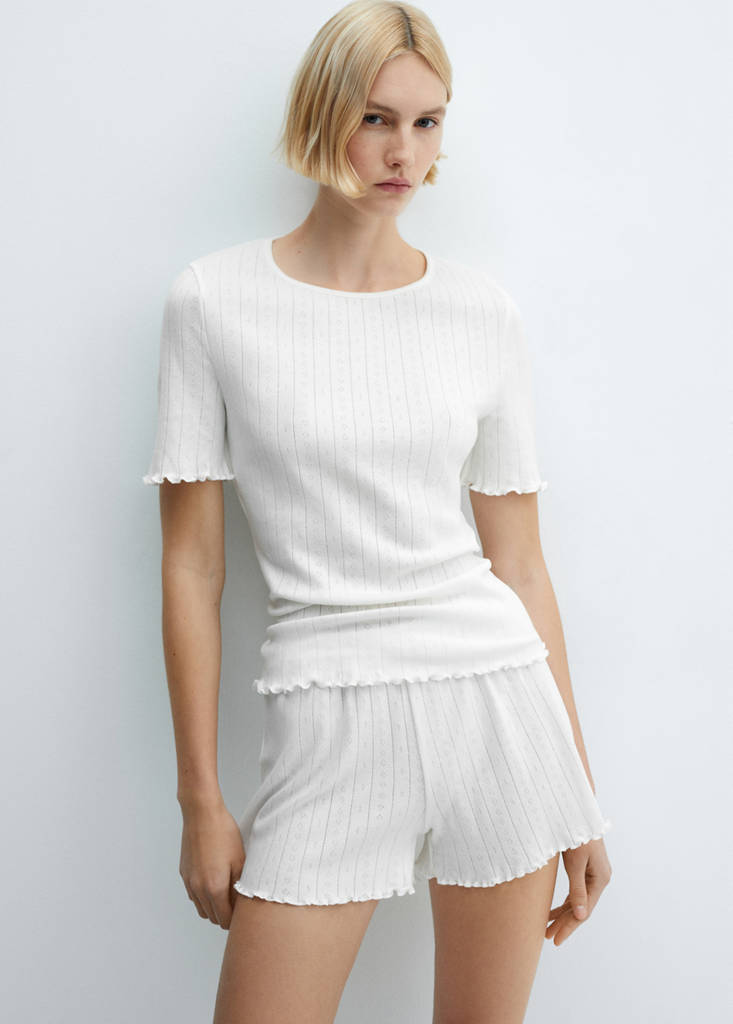 Cotton pyjama shorts with gathered hem