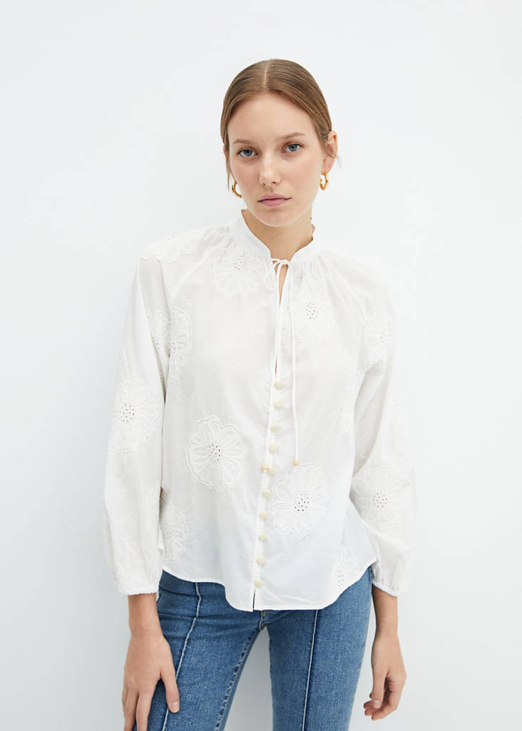 Floral embroidered blouse with bow