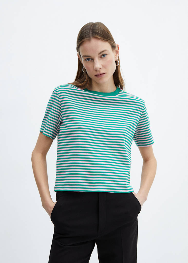 Striped short-sleeved t-shirtCurrent price [899.00 MUR ]899.00 MURSelect a colourGreenThe model is wearing size S and is 179cm tall.Select your sizeXXSXSSMLXLXXLMeasurementsAdd to WishlistSee lookFree delivery to storeRegular fit. Short design. Straight design. Striped print. Round neck. Short sleeves. No FasteningDetails, composition and careStore availability