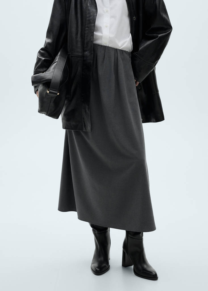 Tissu léger. Design évasé. Coupe midi. Fermeture Éclair dissimulée sur le côté. Détail plissé