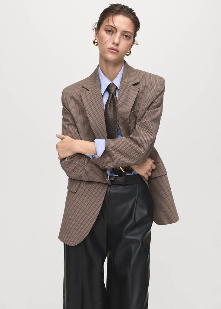 Effet cuir. Design long. Design wide leg. Taille mi-haute. Deux poches latérales. Détail de pli à l'avant. Fermeture avant par bouton, crochet et zip caché sous patte. Doublure intérieure