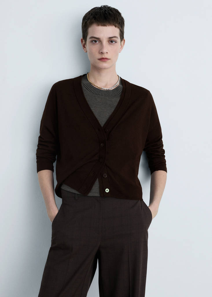 Cardigan maille col VPrix initial barré [1 799,00 MUR ]1 799,00 MURPrix actuel [719,00 MUR ]719,00 MUR-60 %Choisissez une couleurChocolatLe mannequin porte la taille S et mesure 177cm.Choisissez votre tailleXXSXSSMLXLXXLMesuresAjouter aux FavorisVoir le lookLivraison gratuite en boutiqueMaille. Coupe droite. Col en V. Manche longue. Fermeture à boutons sur le devantDétails, composition et entretienDisponibilité en boutique