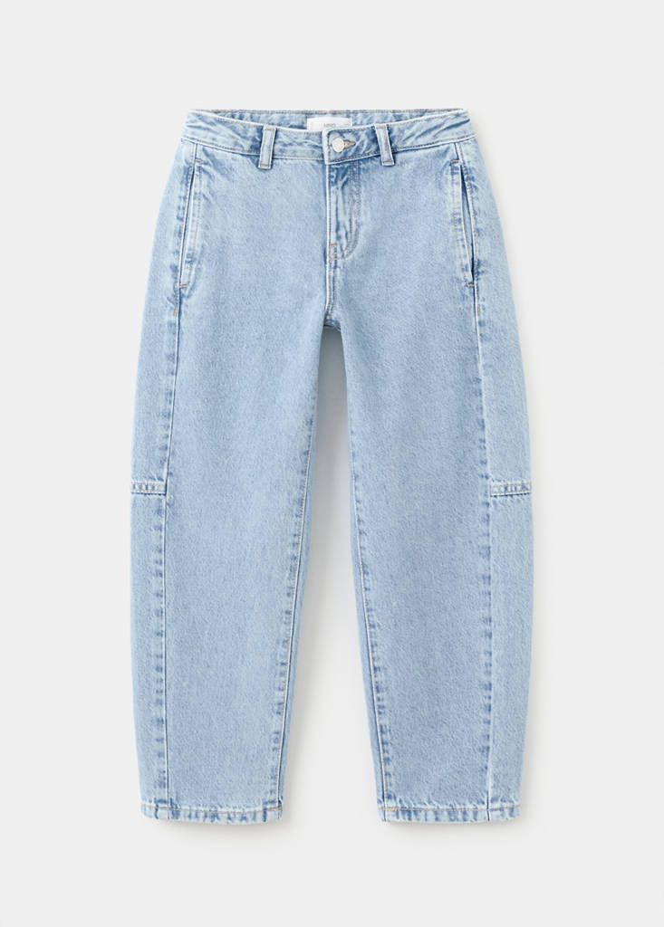 Tissu 100% coton. Design ballon. Passants pour ceinture. Fermeture à boutons et cordon. Deux poches latérales. Poches plaquées à l'arrière.
