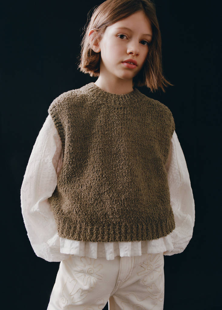 Tissu effet moutonné. Coupe droite. Col rond. Sans manches