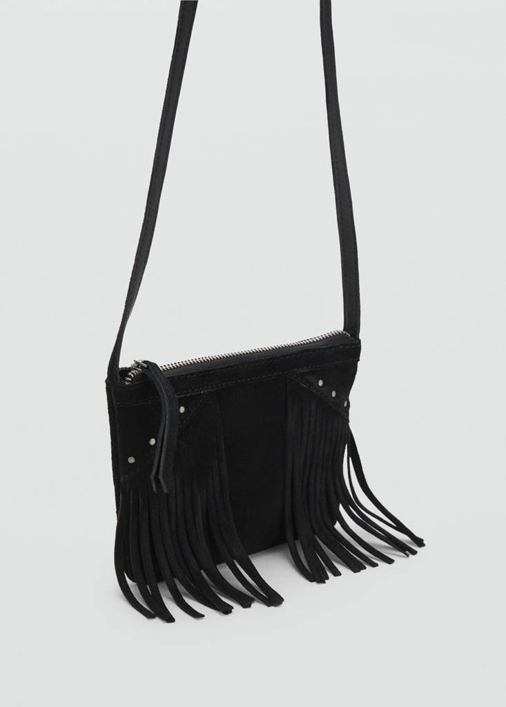 100 % cuir bovin. Forme rectangulaire. Finition à franges. Fermeture à zip. Ornement de clous. Anse longue