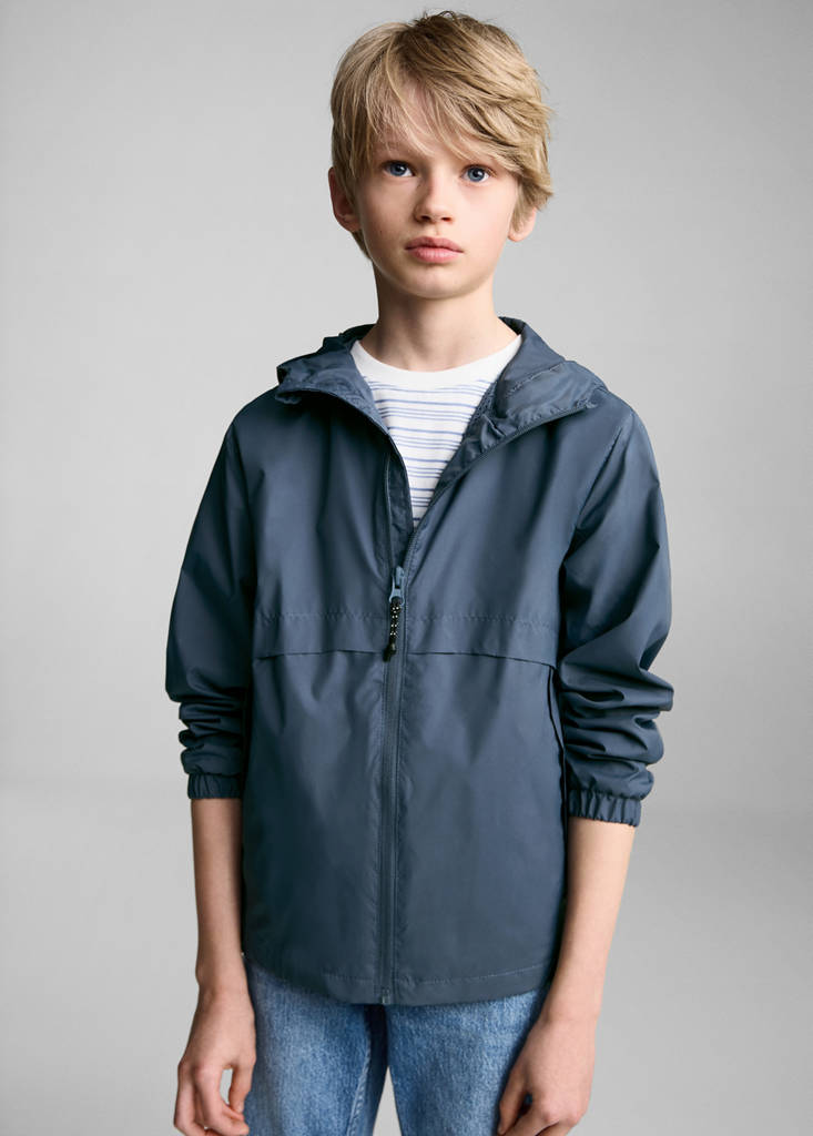 Design imperméable. Coupe droite. Avec capuche. Manche longue. Détails élastiques sur les manches. Deux poches latérales. Avec doublure. Fermeture à glissière