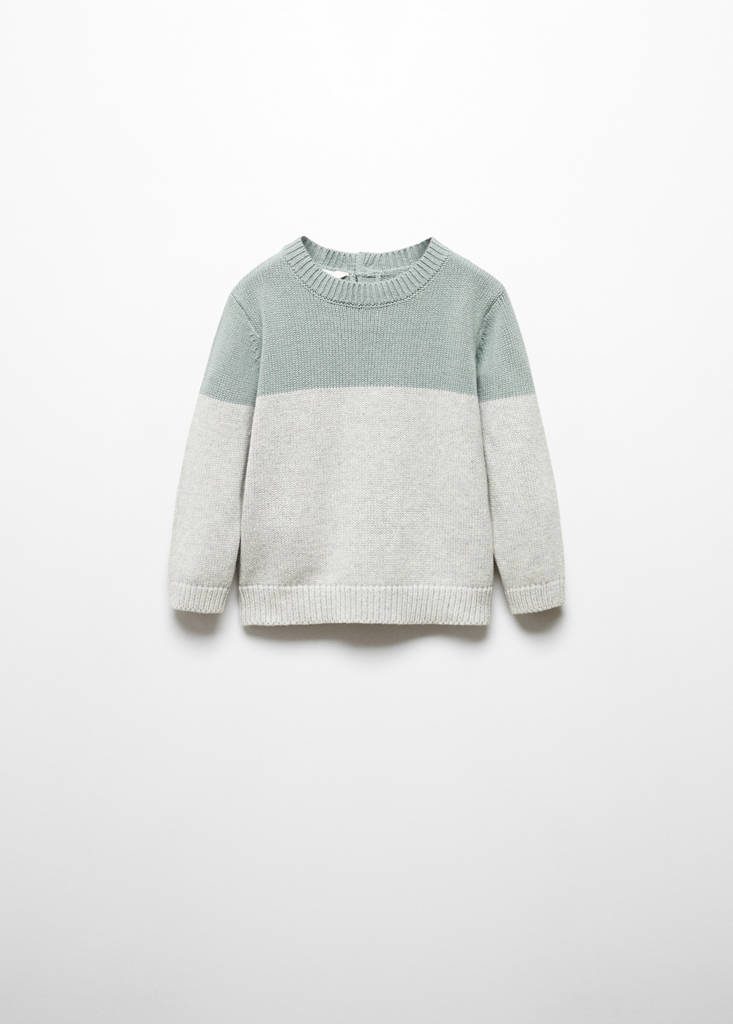 Straight design. Two-tone design. Round neck. Long sleeves. Neck closure. Button closure