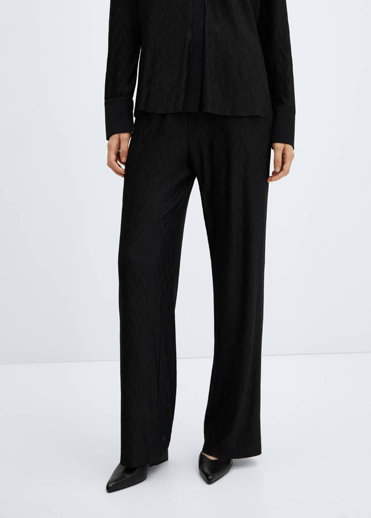 Textured wide leg trousersCurrent price [US$ 45.99 ]US$ 45.99Select a colourBlackSelect your sizeXXSNot available. I want it!XSNot available. I want it!SNot available. I want it!MNot available. I want it!LNot available. I want it!XLNot available. I want it!XXLNot available. I want it!1XLNot available. I want it!2XLNot available. I want it!3XLNot available. I want it!4XLNot available. I want it!DimensionsNotify meAdd to WishlistSee lookFree delivery to storeFluid fabric. Textured fabric. Pleated fabric. Wide-leg design. Elasticated waistband. No Fastening. Total look. Available PlusDetails, composition and careStore availability