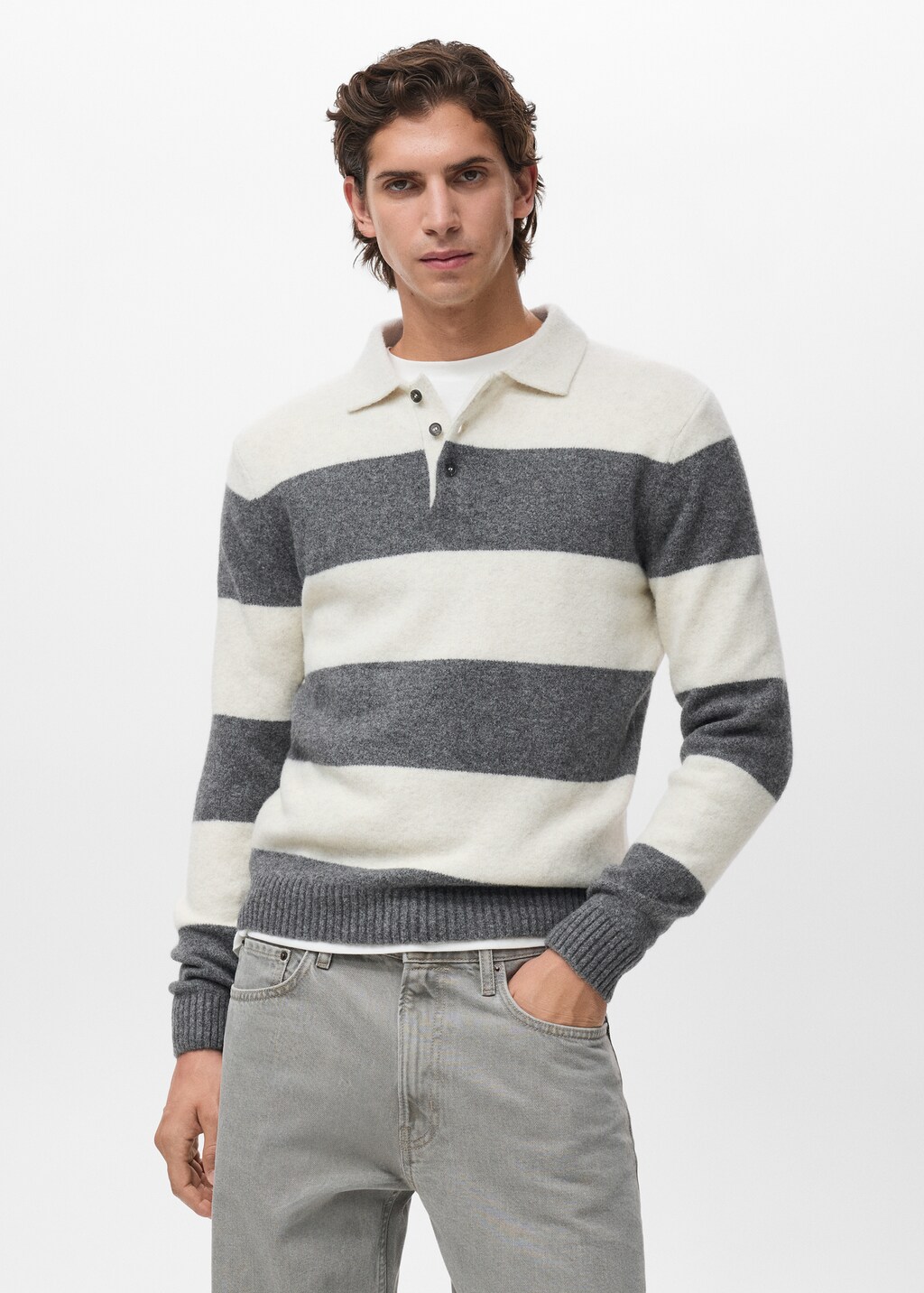 Add to your wishlistKnitted wool blend polo sweaterCurrent price [US$ 99.99 ]US$ 99.99Select a colourEcruThe model is wearing size M and is 186cm tall.Select your sizeSMLXLXXLSize guideAddAdd to your wishlistGet the lookFree delivery to storeSee availability in storeDescriptionWool mix fabric. Stripe design. Straight silhouette. Polo-neck with button closure. Ribbed cuffs.See detailsItem qualitiesWoolAt least 40%A natural fibre that creates durable garments and stands out for its capacity to regulate the body temperature.Share