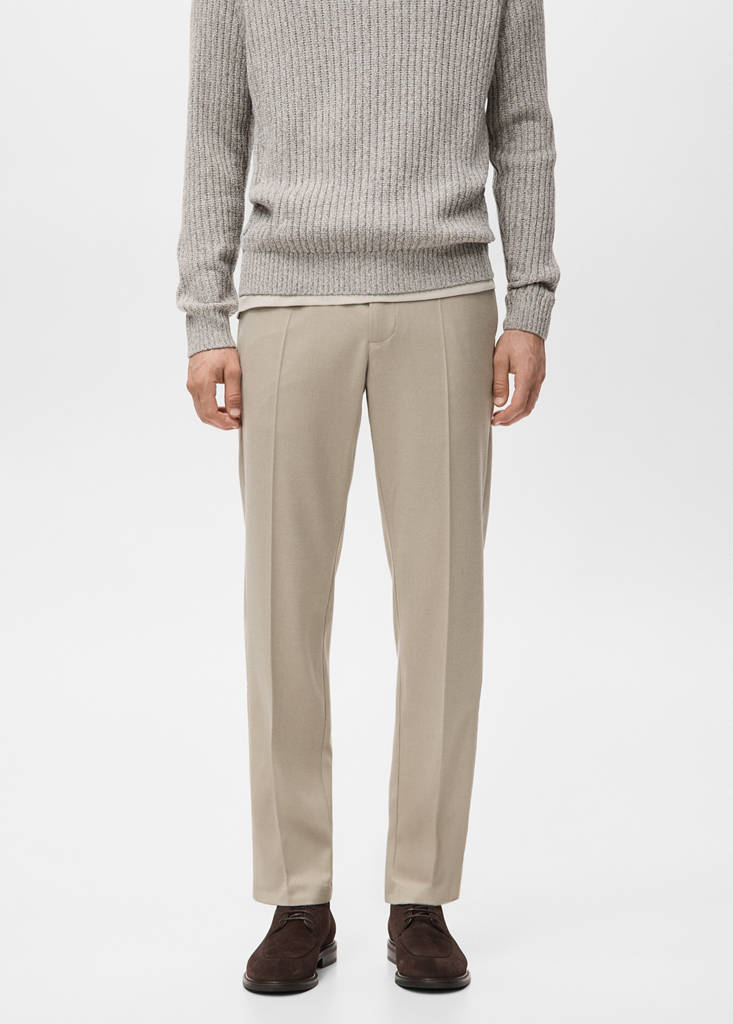 Regular fit. Cotton blend fabric. Detail of front and rear calipers. Two side pockets. Two flap and button pockets on the back. Belt loops. Zip and button fastening