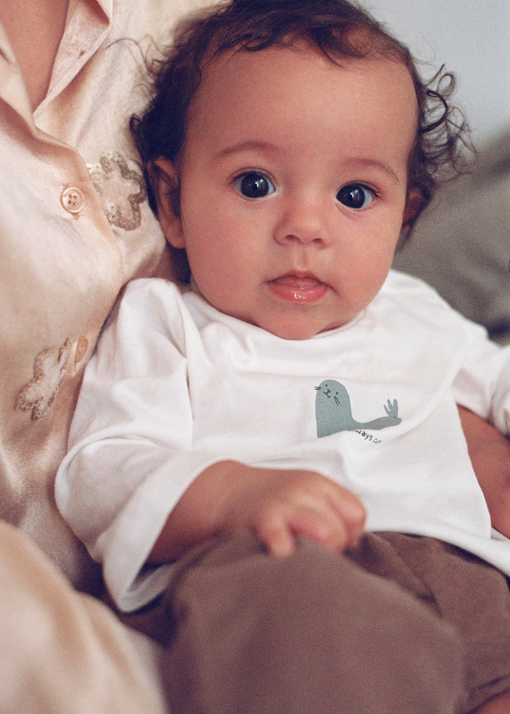 100% Algodón. Estampado. Diseño recto. Cuello redondo. Manga larga.