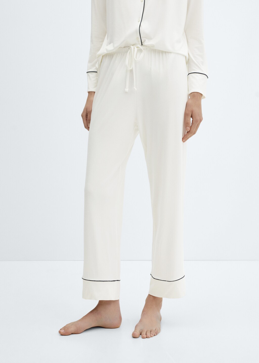 Guardar como favoritoNew NowPantalón pijama ribete Precio actual [$ 749.00 ]$ 749.00Selecciona un colorBlancoSelecciona tu tallaECHNo disponible ¡Lo quiero!CHNo disponible ¡Lo quiero!MNo disponible ¡Lo quiero!GNo disponible ¡Lo quiero!Guía de tallasAvísameAñadir a FavoritosEnvío gratis a tiendaVer disponibilidad en tiendaDescripciónTejido fluido. Diseño recto. Cintura con goma elástica. Ribete en contraste.Ver detalles