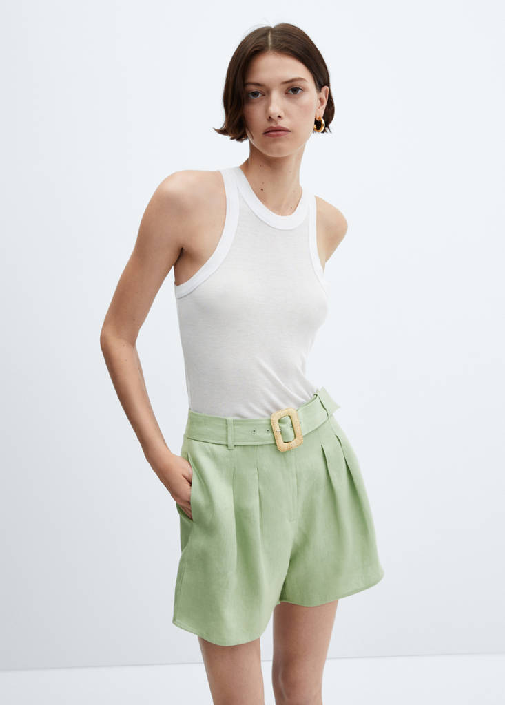 100% Lino. Diseño recto. Diseño corto. Tiro alto. Trabillas. Cierre de cremallera y gancho. Cinturón con cierre de hebilla. Detalle de pinzas