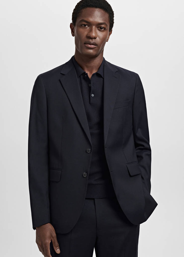 Super slim fit. Colección sastrería. Solapas de muesca y ojal. Bolsillo de solapa en la parte frontal. Cierre delantero con botones. Puños de tira abotonada. Doble abertura posterior. Bolsillo interior. Forro interior