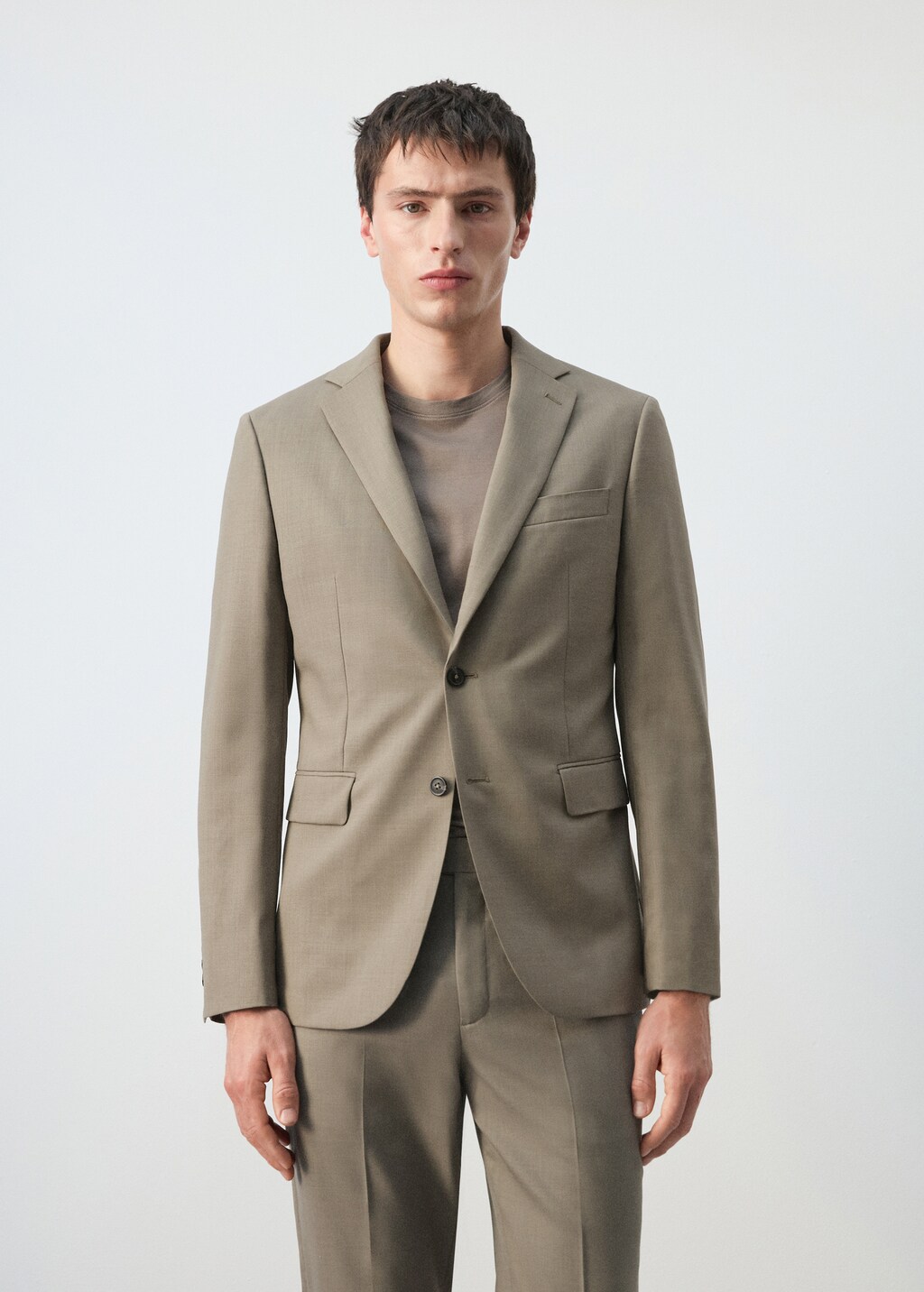 ESSENTIALS: Made to last. Slim fit. Tejido 100% lana virgen. Cuello solapa con ojal. Manga larga con puños abotonados. Bolsillo de ribete en el pecho. Dos bolsillos de solapa laterales. Bolsillo interior. Dos aberturas en la parte posterior del bajo. Forro interior.