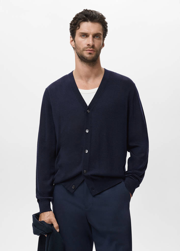 Exclusivo Online. Regular fit. Tejido 100% lana. Cuello pico. Manga larga con puños elásticos. Cierre delantero con botones. Cuello, mangas y bajo acabados en canalé