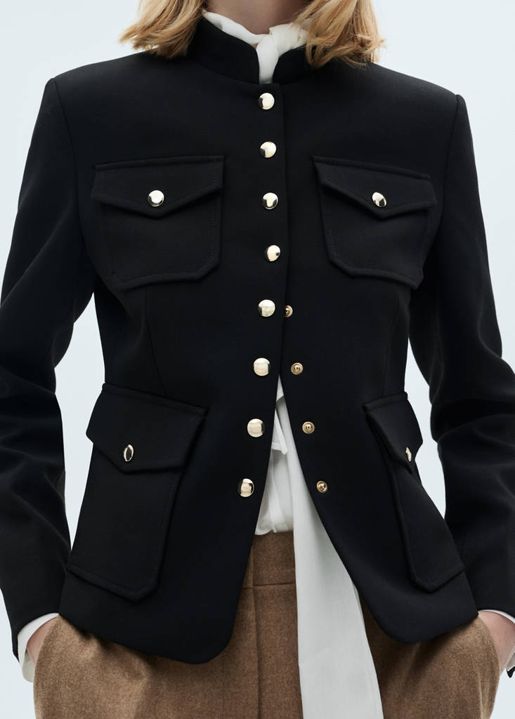 Diseño recto. Cuello redondo. Manga larga. Cuatro bolsillos de solapa en la parte delantera. Cierre de botones en la parte delantera. Botones metálicos. Forro interior