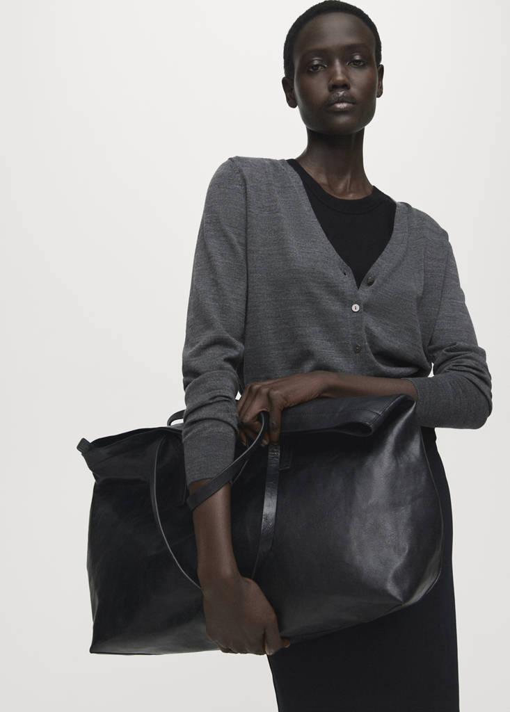 Confeccionado en tejido 100% lana merino de punto fino, este diseño recto presenta cuello pico y manga larga. Tiene cierre de botones delantero. Colección Selection