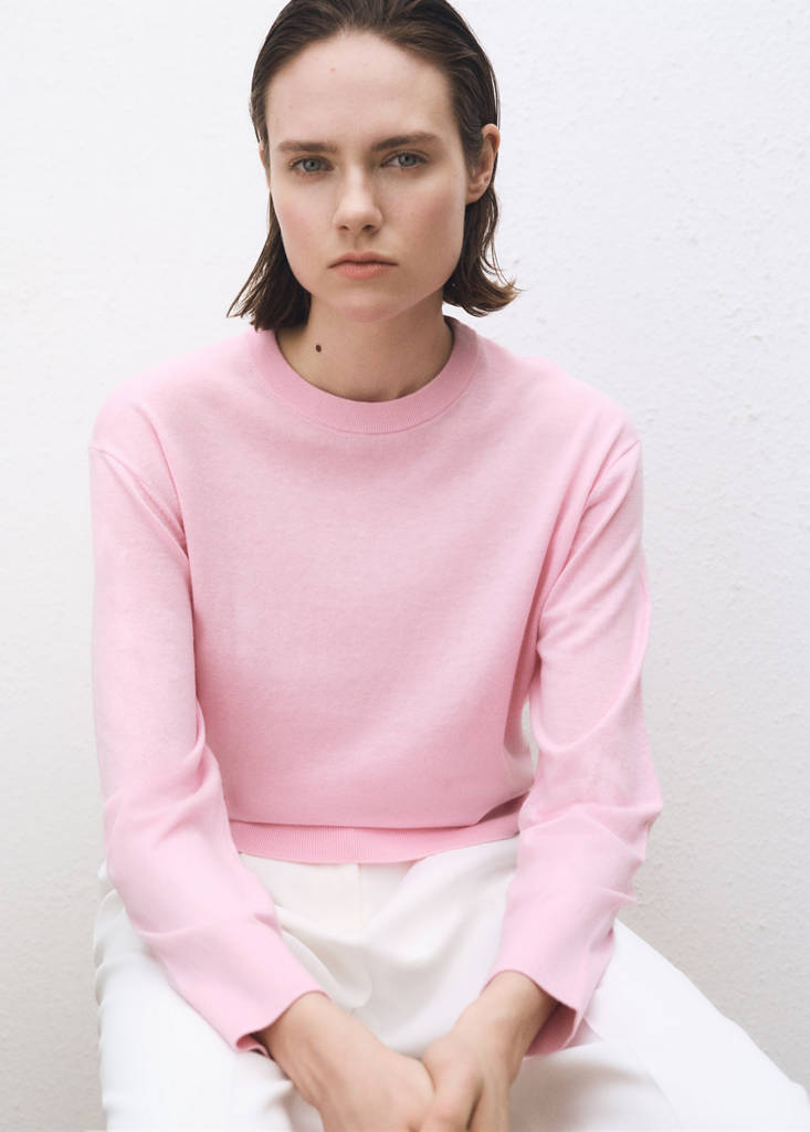 Tejido mezcla de lana. Tejido de punto fino. Diseño recto. Cuello redondo. Manga larga. Sin cierre. Colección Selection