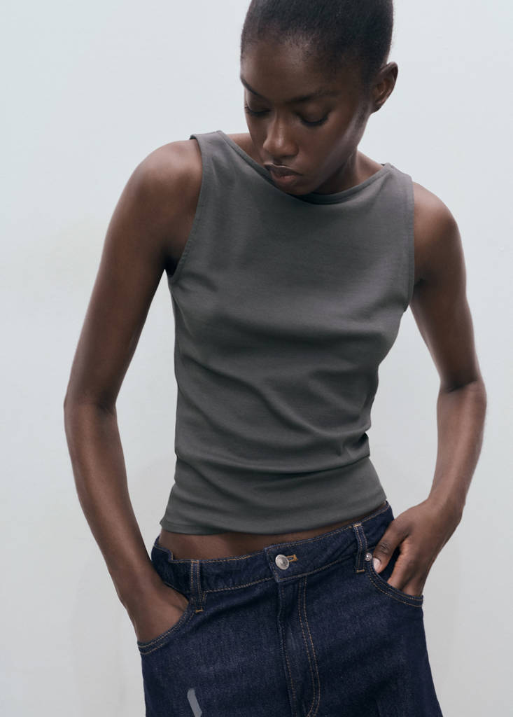 Top tirantes cuello barcoPrecio actual [$ 499.00 ]$ 499.00Selecciona un colorGris antracitaLa modelo lleva la talla CH (EUR S) y mide 176cm.Selecciona tu tallaECH (EUR XS)No disponible ¡Lo quiero!CH (EUR S)No disponible ¡Lo quiero!M (EUR M)No disponible ¡Lo quiero!G (EUR L)No disponible ¡Lo quiero!EG (EUR XL)No disponible ¡Lo quiero!MedidasAvísameAñadir a FavoritosVer lookEnvío gratis a tiendaConfeccionado en tejido de algodón, este diseño entallado presenta un cuello barco con tirantes anchos, ofreciendo comodidadDetalles, composición y cuidadosDisponibilidad en tienda