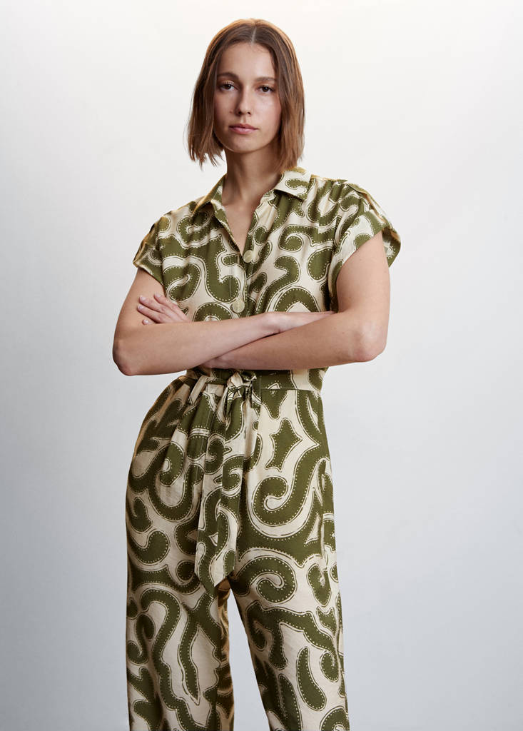 Tejido fluido. Diseño recto. Diseño largo. Diseño estampado. Cuello camisero. Manga corta con vuelta. Cierre de botones en la parte delantera. Lazo ajustable en la cintura. El color verde es exclusivo online. Disponible Plus