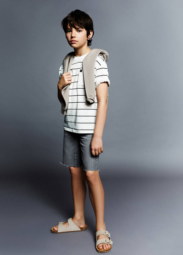 Tejido de algodón estilo tejano vaquero. Cinco bolsillos. Diseño corto. Cierre de cremallera y botón. Bajo deshilachado