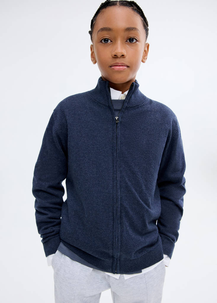 100% cotton fabric. Knitted fabric. Straight design. High collar. Long sleeves. Zip closure