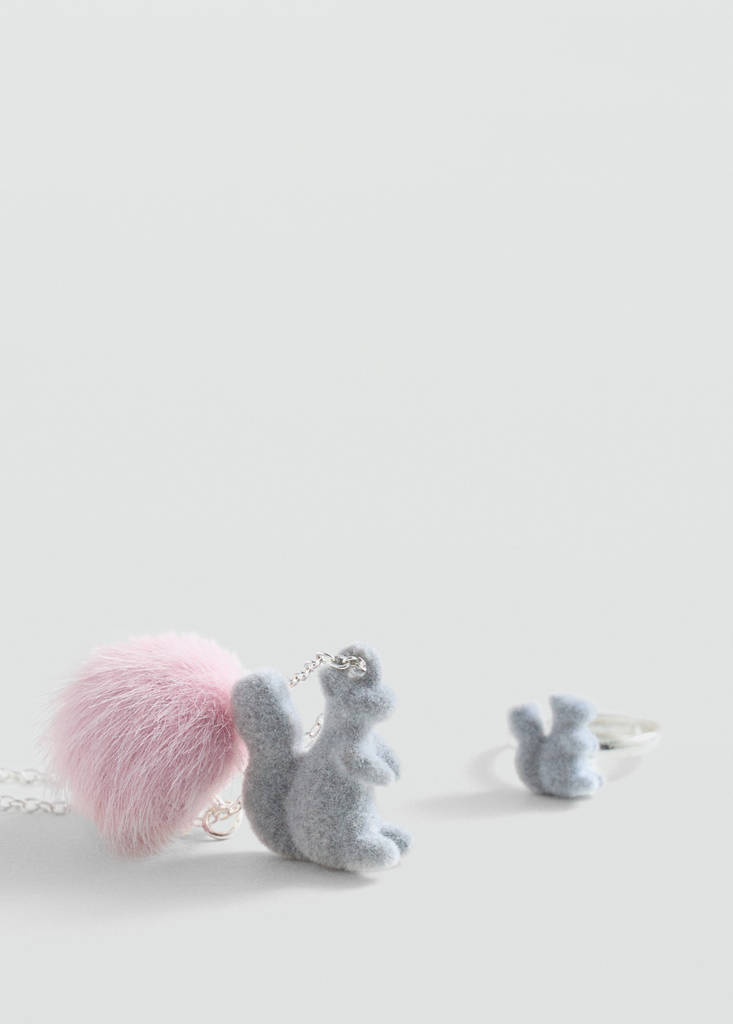 Pack of 2. Teddy detail. Zip and carabiner fastening. Squirrel design
