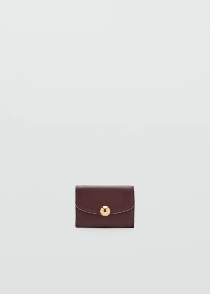 Three card slots. Jewel-effect button. Flap closure with snap button