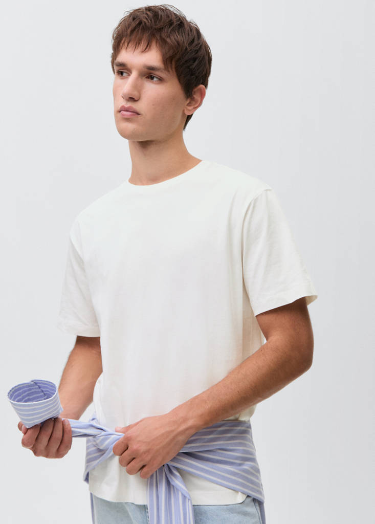 Essential cotton-blend T-shirtCurrent price [US$ 29.99 ]US$ 29.99Select a colourOff WhiteSelect your sizeXXSNot available. I want it!XSNot available. I want it!SNot available. I want it!MNot available. I want it!LNot available. I want it!DimensionsNotify meAdd to WishlistSee lookFree delivery to store100% Cotton. Straight design. Round neckDetails, composition and careStore availabilityItem qualitiesRecycled cottonAt least 20%This fibre is obtained from pre- and post-consumer textile waste that is transformed into new fabrics.