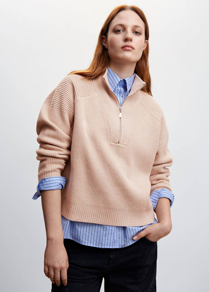 Malha de ponto grossa. Design reto. Gola alta com fecho de correr. Manga comprida. Fecho de correr à frente. Extremidades caneladas. Uma das cores só está disponível online. O creme e o verde estão disponíveis exclusivamente online. Gola perkins com fecho de correr