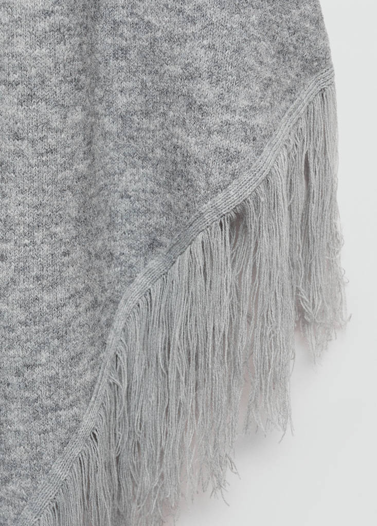 LÃ RESPONSÁVEL. Malha de tricô. Design longo. Extremidades com franjas. Sem fecho. Design assimétrico. Estas peças contêm lã certificada pelo RWS (Responsible Wool Standard), o que garante que os animais de que foi obtida foram tratados de forma ética e responsável