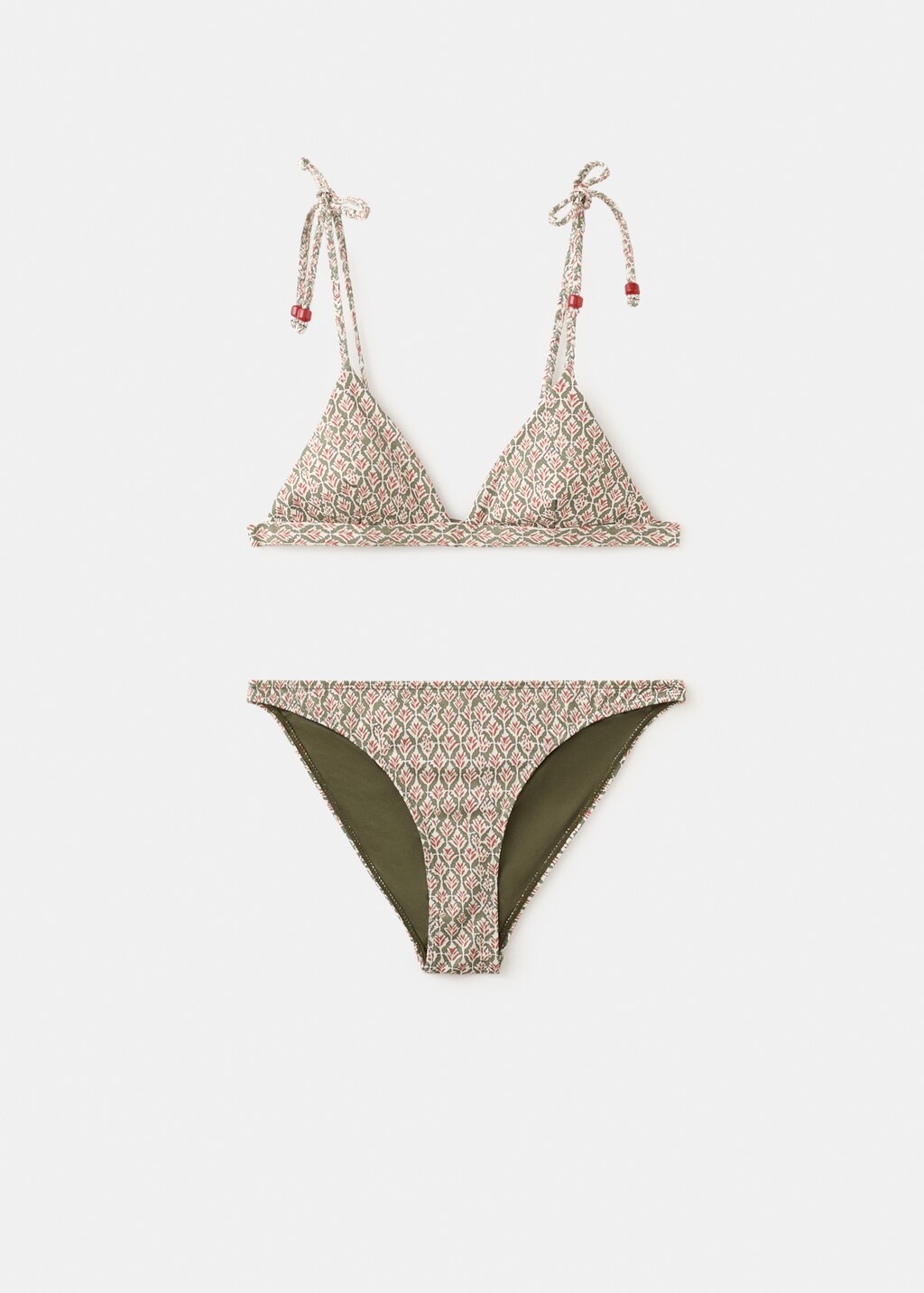 Pack de biquíni. Tecido elástico. Silhueta triângulo. Alças finas ajustáveis. Design estampado. Design estampado floral. Fecho de gancho ajustável. Cuequinha clássica.