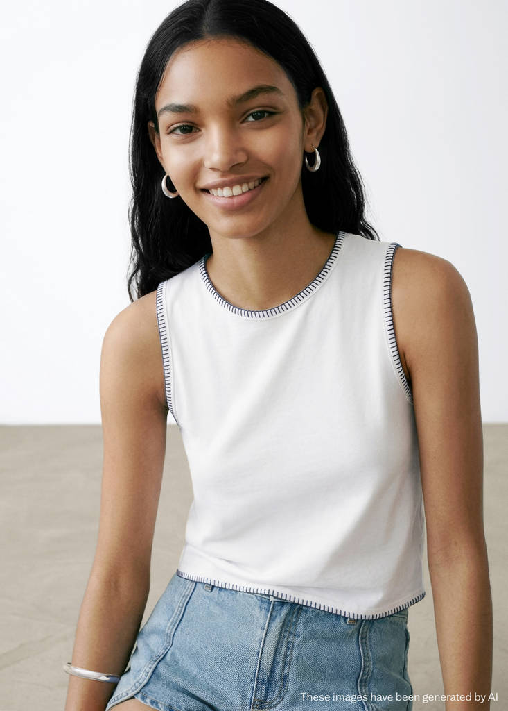 Tecido 100% algodão. Design reto. Ribetes em contraste. Gola redonda. Manga curta. Alças largas. Sem fecho